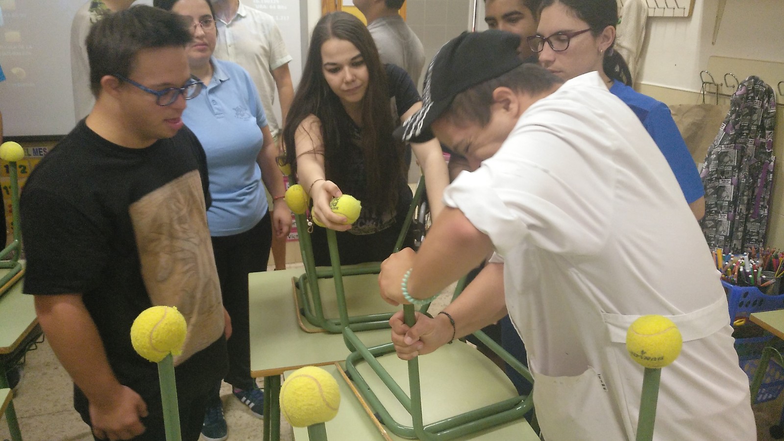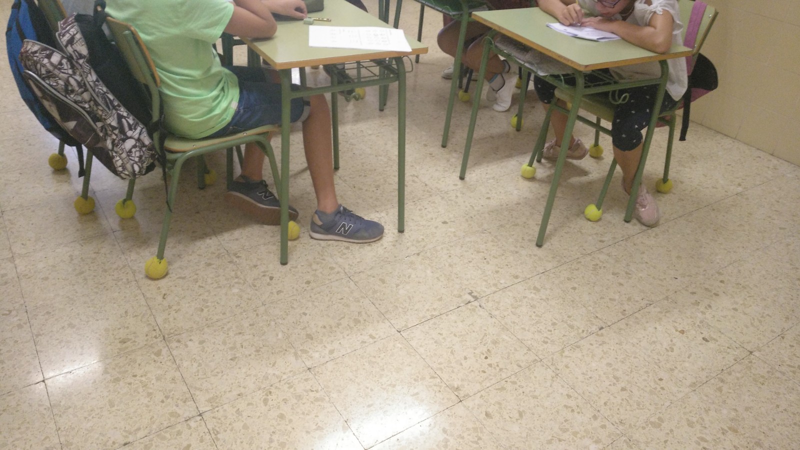 En el Centro de Educación Especial Ruiz Jiménez han aprovecha las pelotas usadas para colocarlas en las patas de las sillas en sus aulas.