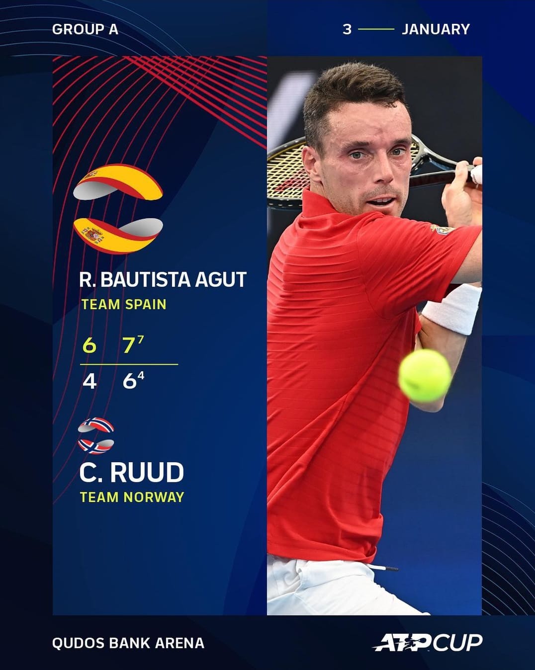 03/01/2022 Derrotar a Roberto Bautista Agut en la ATP Cup es una tarea difícil, que Casper Ruud aprendió por las malas el lunes. Bautista Agut mejoró a 9-2 en individuales en la prueba por equipos con una victoria por 6-4, 7-6 (4) contra Ruud, que aseguró el triunfo de España contra Noruega. El jugador de […]Leer más